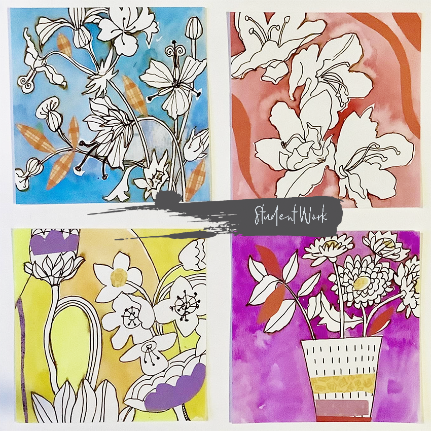 "This has been my favourite of your courses yet. I have an enormous stash of cards as a result and am pleased as punch with what I've produced. I have enjoyed every session and my confidence in my own skills has rocketed. I am going to continue using and developing these techniques and I'll be back for another course soon; I need a small breather first as I've been so fired up that I've been working in my art room until midnight and need to catch up with some boring housework !! Thank you so much."