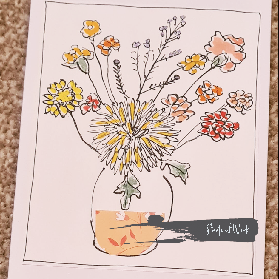 It's a win win course! Try new techniques, use what art materials you have and be ready with a stash of cards to send whatever the season. I always offer adaptable ideas so you can use my ideas as a springboard for your creativity.