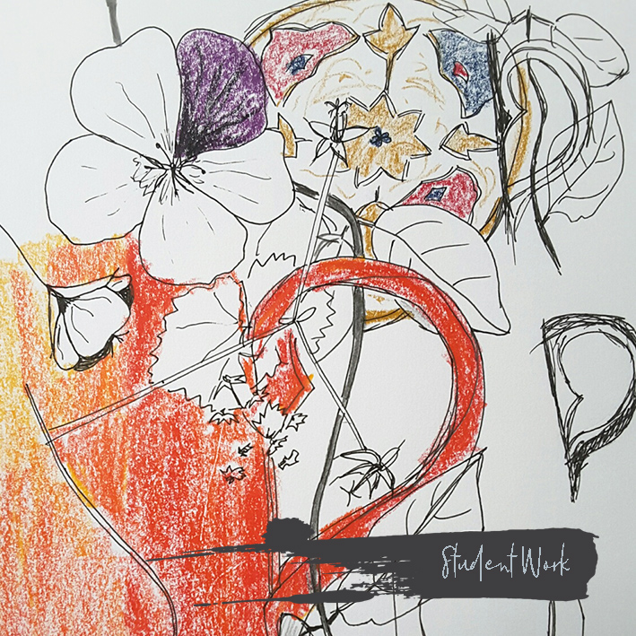 My background is in textiles, and many of my students are textile makers looking to be able to research and design from original source rather than photos. I use mark-making in my drawing reminiscent of stitch - dots and dashes. The course could work well for developing ideas for stitch.