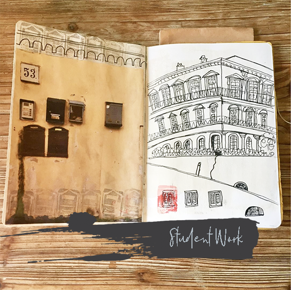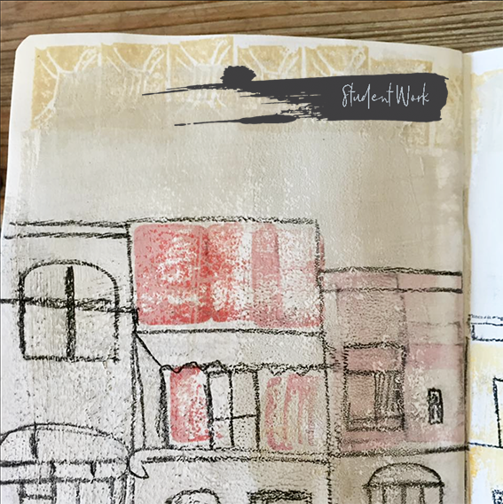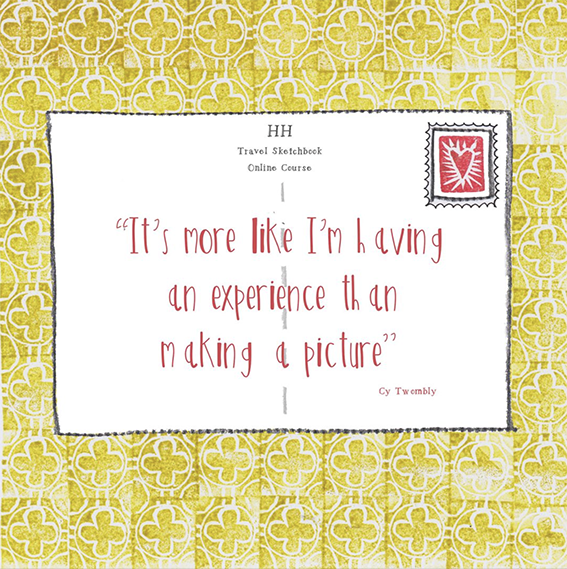 The course consists of ten sessions, as well as an introduction and farewell. Each session features a video tutorial, as well as footage of me creating my holiday sketchbook, still images to guide and inspire you as well as tasks and advice to help you get the most out of your travel sketchbook. The course is about how to find your own visual language, and how to approach drawing, to give you confidence to draw outside, and how to make the most of being on holiday, capturing the essence of where you are staying and create a mixed media sketchbook that is full of vitality.
